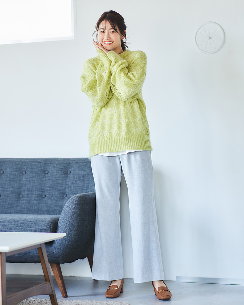 トップスも合わせやすく、カジュアルにもエレガントにも着こなせます。