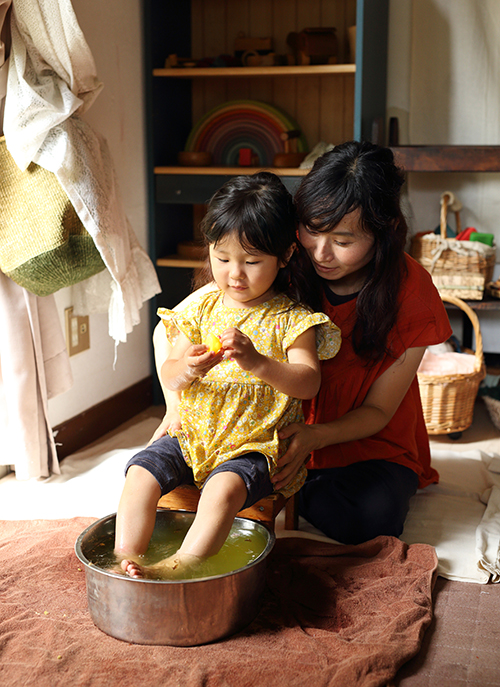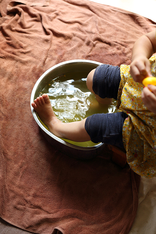 「あたたかくて気持ちいい」とお子さんも大喜び。阪口さんのお宅では、ビー玉を入れて足の指でつかむゲームをしながら足浴をするそうです。