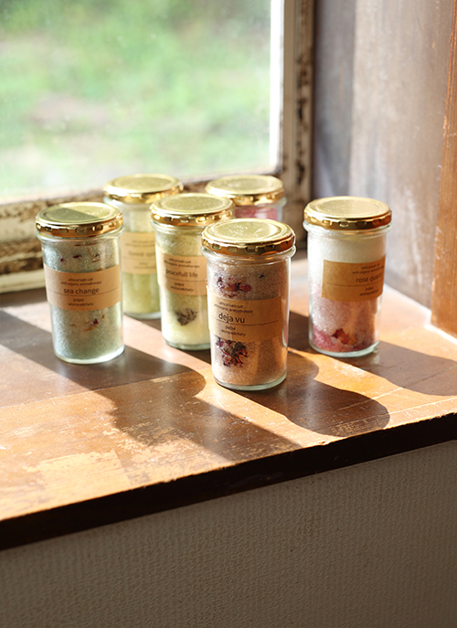 オンラインショップや地元のフェアトレードショップにてバスボムやアロマバスソルトの販売。「本質」を大切に、オーガニックでエシカルな素材を使っているそうです。