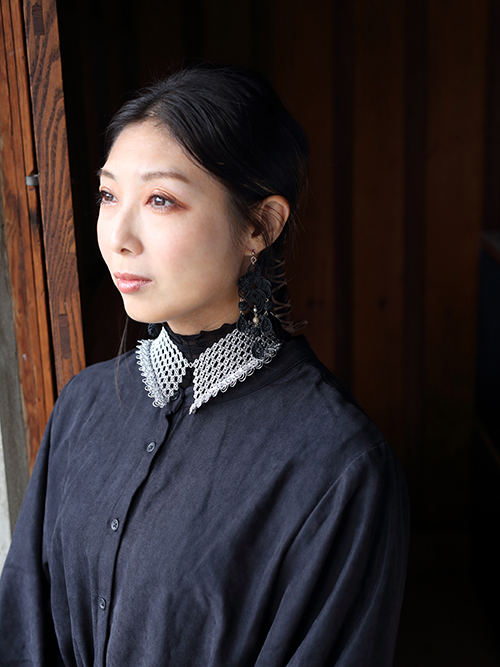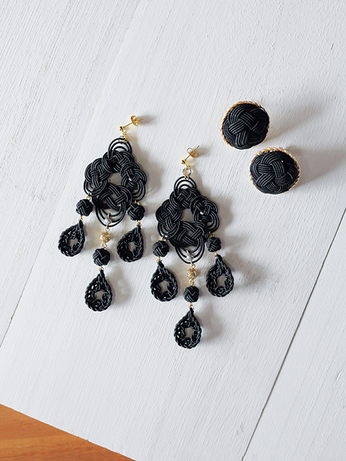 存在感がありながら、さりげなく髪に馴染むピアス。「黒は仏事に使われる色ですが、祝儀も不祝儀も根本にあるのは相手を大切に思う心なので、アクセサリーとして楽しんでもらいたい」といいます。