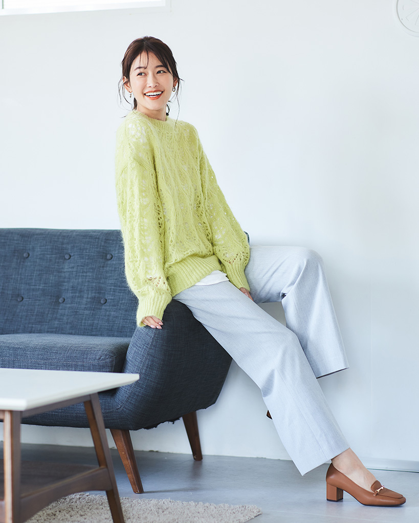 トップスも合わせやすく、カジュアルにもエレガントにも着こなせます。