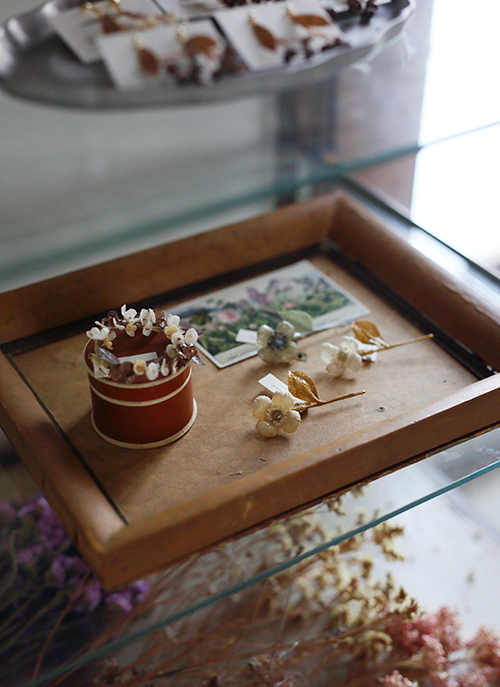 店内にある物販コーナー。この日はシトカオリジナルのスワッグや作家ものの作品やアクセサリーが展示販売されていました。