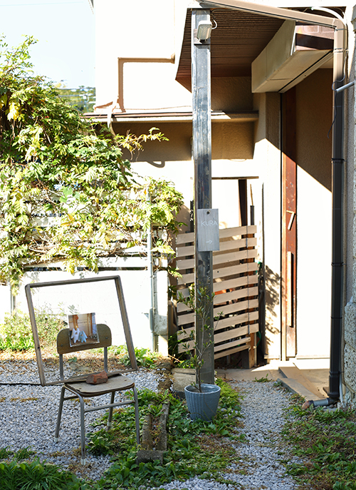 カフェを出て左に進むと石蔵の入り口があります。KURAを書かれた小さな看板が目印。