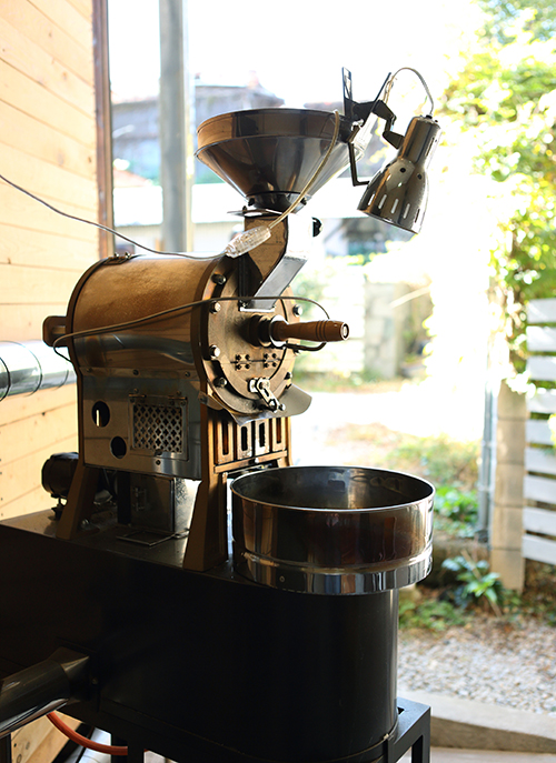 入り口に置かれた焙煎機。カフェでいただけるコーヒーは、ここでオーナー自らが自家焙煎したもの。シトカブレンドは、2種類の豆を浅煎りし、コクと酸味のバランスのいい飲みやすい味わいに仕上げているそうです。