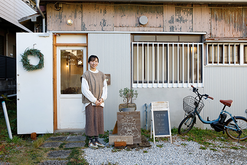 横浜市営地下鉄 阪東橋駅から徒歩15 分ほど。アーケードのある商店街を抜け、お米屋さんの脇の小道を入ると現れるトタン壁の建物。ここは、𦚰阪希澄さん、佐藤嘉風さんご夫婦が営む「CAFE シトカ」。お米屋さんの離れや蔵だった場所をリノベーションし、2019 年に1 階をカフェ、2 階をミュージシャンである佐藤さんの事務所としてオープンしました。