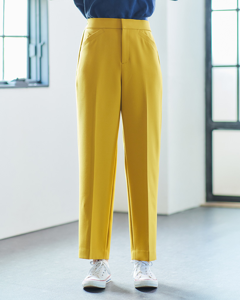 シンプルなデザインでトップスが合わせやすく、着こなし自由自在なアンクルパンツです。
