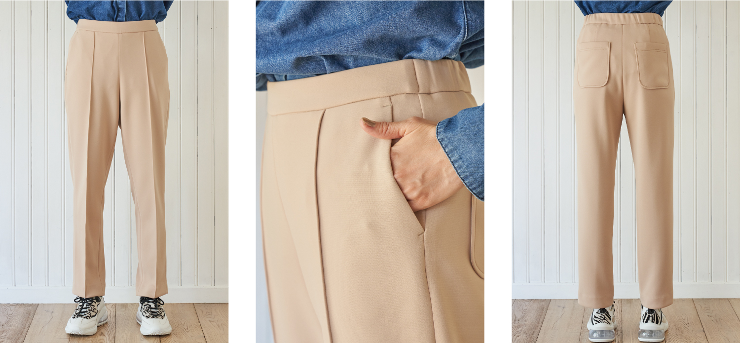 立ったり、座ったり、しゃがんだり、自転車を漕いだり…忙しい毎日の中でもシワになりにくく、抜群の伸縮性を持った様々なシーンに対応できるパンツ。