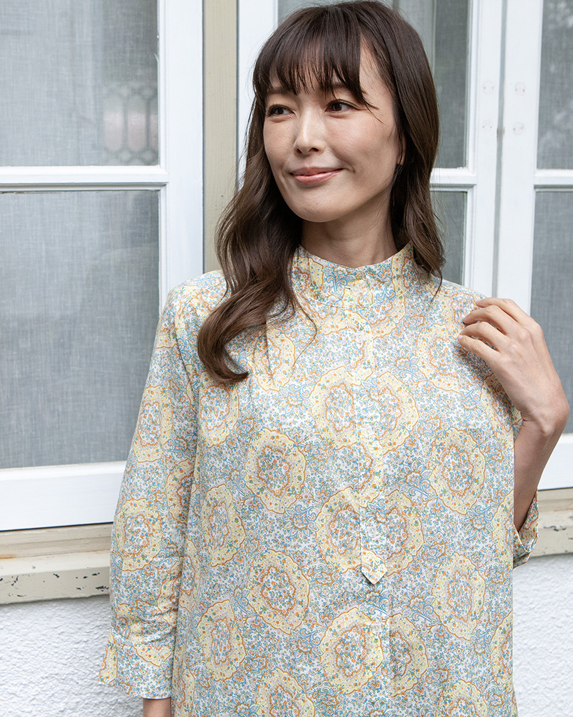ペイズリー“Guerino(グエリーノ)”をセレクトしたオーガニックコットンブラウス。