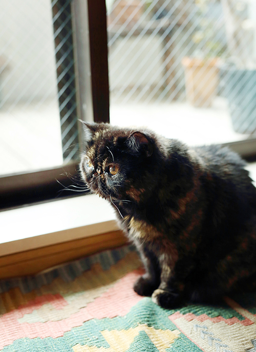 愛する猫とのんびり過せたら、いつだってごきげん。「個体差はあると思いますが、エキゾは手がかからず、飼いやすい猫です」とイワタさん。猫の習性や性格に配慮しながらも、自分の好きなインテリアは諦めない。ここには人も猫も心地よい暮らしがありました。