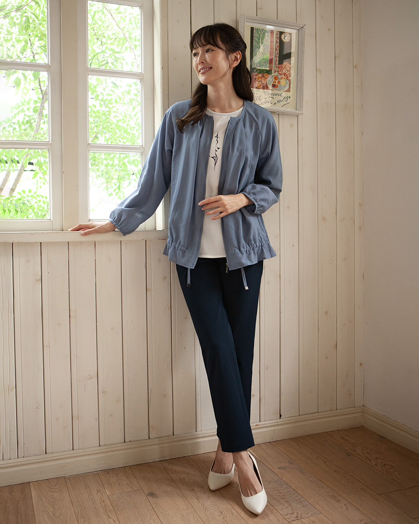 ナチュラルなシワ感と程よい光沢があり、シャツ感覚で気軽に羽織れます。