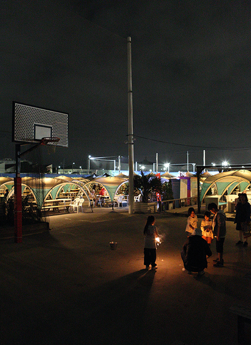 砂浜では着々と準備が整い、あとは暗くなるのを待つばかり。