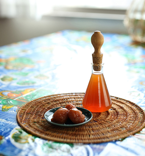 梅酢は水や炭酸水で割って飲むこともできます。冷房で体が冷えたときには、お湯で割ってホッとこころぐ時間をお過ごしください。