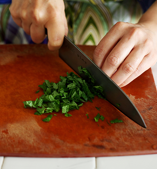 [大葉を切る]