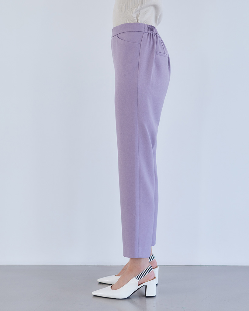 楽なのにスッキリ見えるようにこだわった総ゴムのストレートアンクルパンツです。