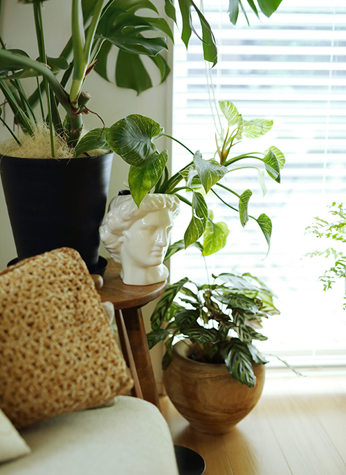 緑のある暮らしは、空間を彩ってくれるだけでなく、過ごす人の気持ちも穏やかに癒してくれます。「植物はスタイリングの仕事でも欠かせない大切な存在」という村上さん。目や手間をかけた分、素直な反応を返してくれるので、育てる喜びを感じることもできます。