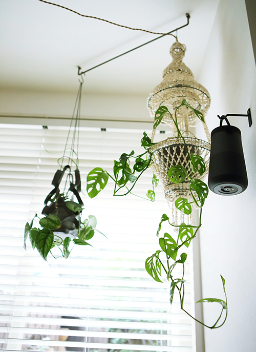 つるが伸びるような植物は、高い所から吊るす「ハンギング」という手法を使うことで空間に変化が生まれます。植物にとって居心地の良い場所と、自分が置きたい場所のバランスが大切だそうなので、家にお迎えする前に、どこにどのように飾るかをイメージしておきたいですね。