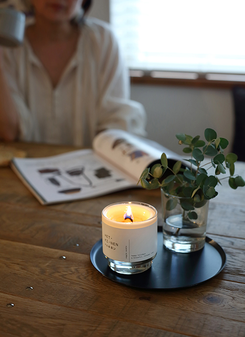 香りには心と体をすっとときほぐすような効果があります。「キャンドルは、家事が終わって一息つくときや仕事に集中したいときなど、日常的におしみなく使っています」と村上さん。インテリアとして飾っておくだけでも素敵なキャンドルは、トレイにのせてすぐに使える場所にスタンバイ。ゆらめく炎を見ているだけでもリラックスできるので、このまま寝室に持っていくこともあるそうです。