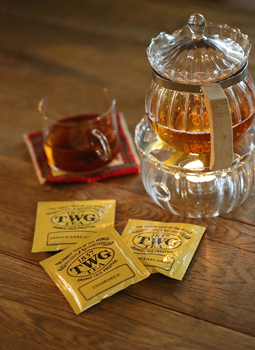 仕事や家事の合間のティータイムでリラックス。ほっと一息つける時間をつくることで、心の余裕につながります。長時間適温のまま楽しめるティーウォーマーを使って、お茶の香りやキャンドルのゆらめきを楽しんでいる村上さん。そんな五感を満たしてくれるティータイムは、心に潤いをもたらしてくれるでしょう。