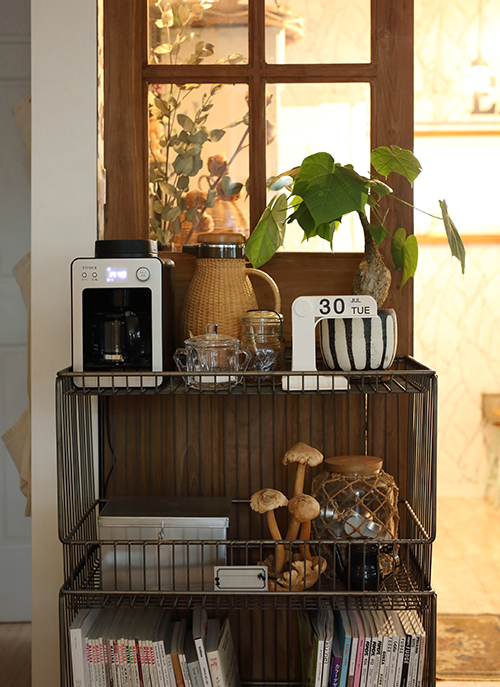 家の中に小さなカフェコーナーや自分だけの特等席をつくることで、ティータイムやコービーブレイクの時間が特別なものに。すぐ手に届くところに雑誌を収納し、実用性とおしゃれさを兼ね備えたコーナーになっています。