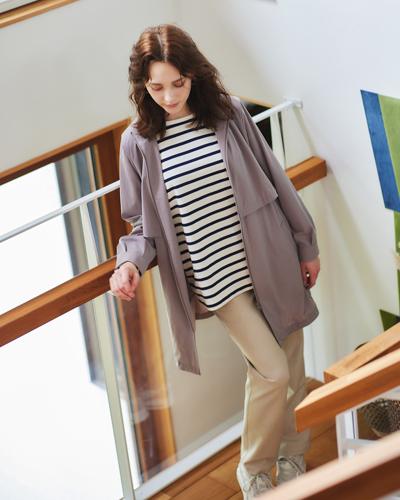 裾のドローストリングでシルエットアレンジを楽しめます。