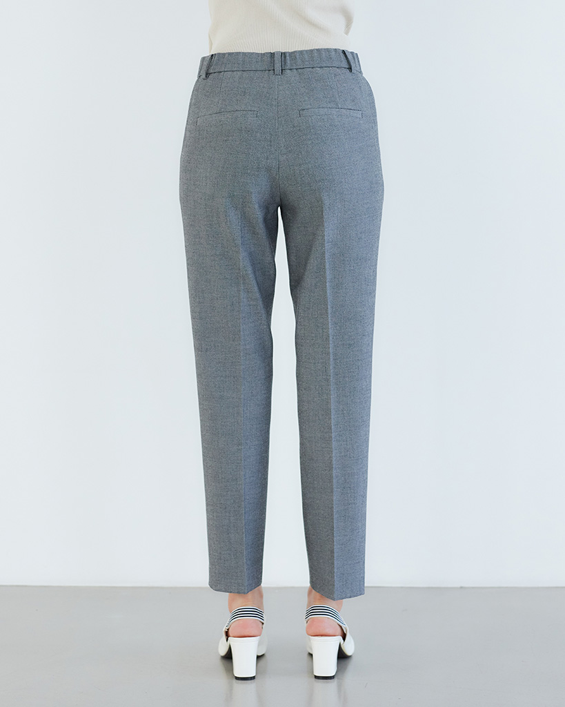 後ろ部分にゴムを入れているのではきごこちが良く、体のラインに心地よくフィットするストレートシルエットです。