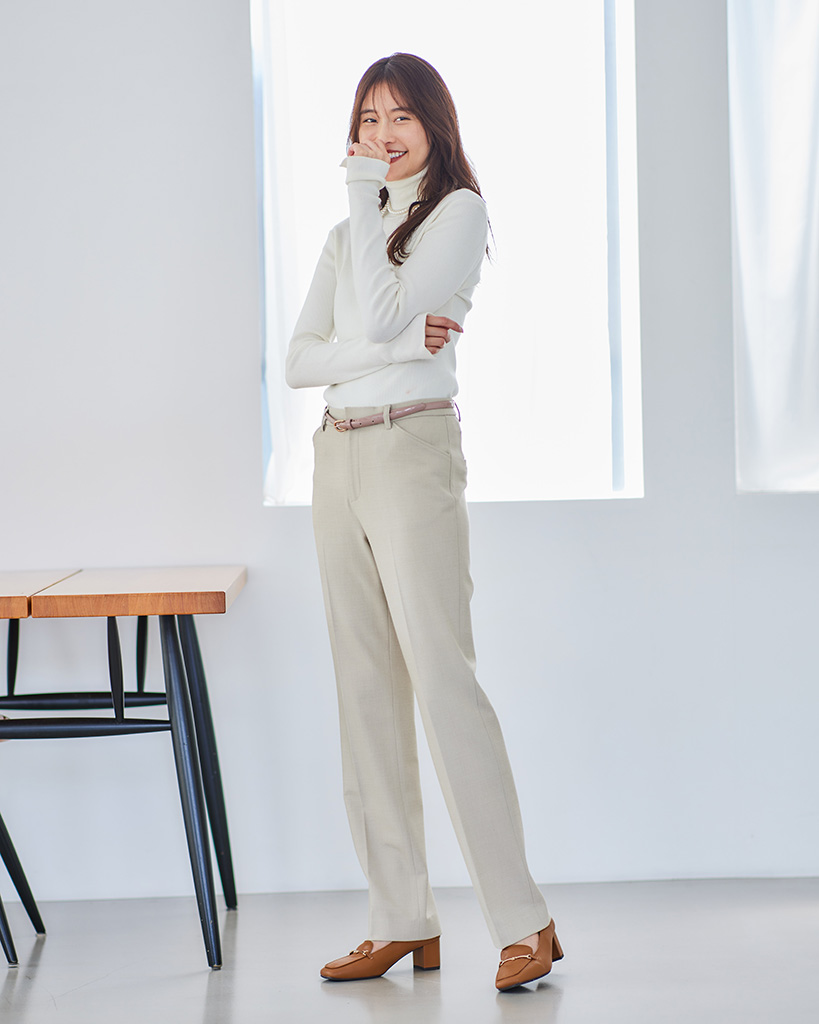 ストレッチ性に優れ美しいシルエットを一日中キープしてくれる、楽なのにキレイが叶うシンプルで飽きのこないパンツは、