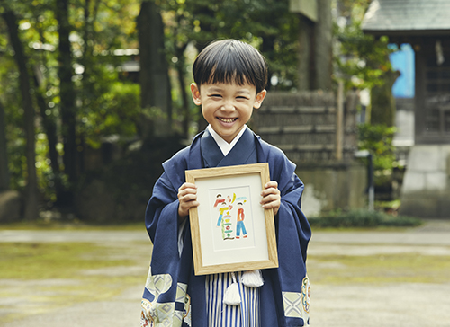こちらは、息子さんの七五三の記念に描かれた作品。名前に込められた願いや由来、家族構成、エピソード