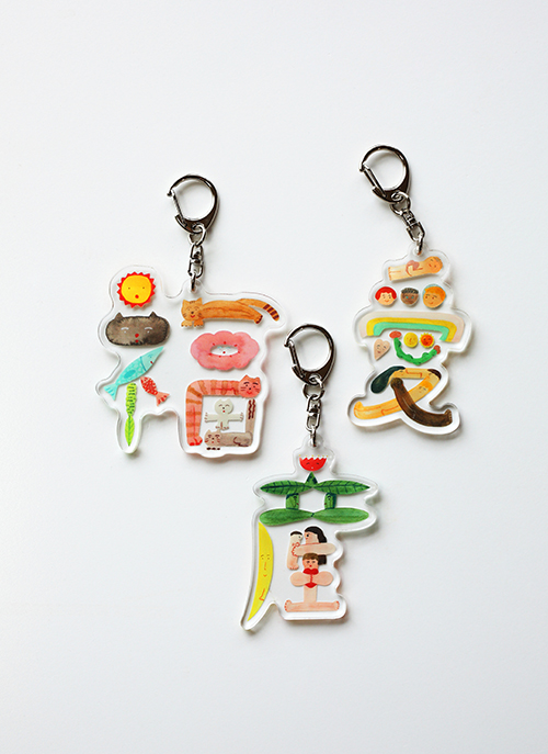 猫たちが集まった「福」、赤ちゃんを抱くお母さんと、それを支えるお父さんが描かれた「産」、愛のパワーと笑顔が溢れる「愛」。自分用にはもちろん、誕生日、出産祝い、愛する人への贈り物にぴったりです。