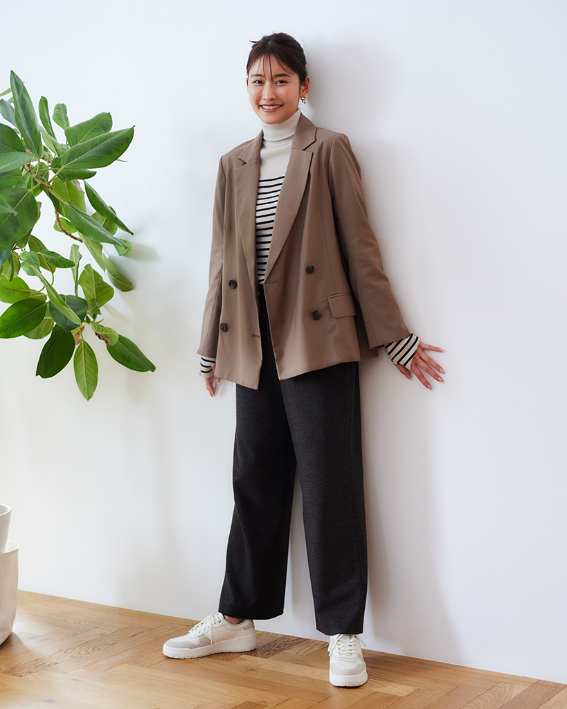 トップスも合わせやすく、カジュアルにもエレガントにも着こなせます。