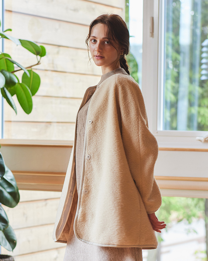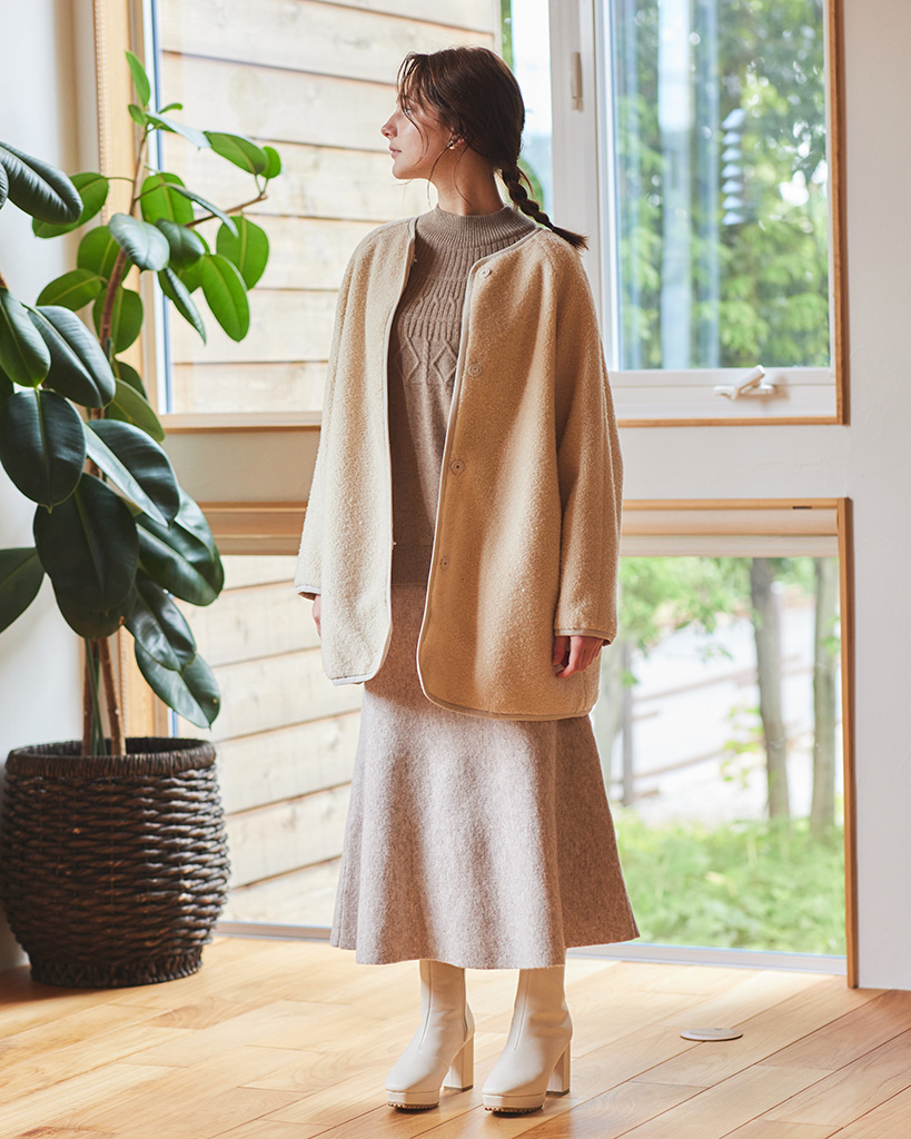 ボアキルトコート ¥39,600 ふわっとした大人かわいいボアキルトコート。 すっきり見えするルックスにパイピングがアクセントに。 裏をキルティングにすることで寒い時期にも活躍するアイテムです。 ■Shop List