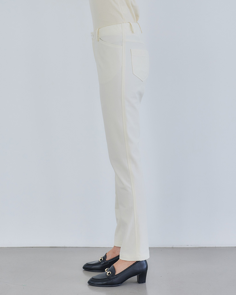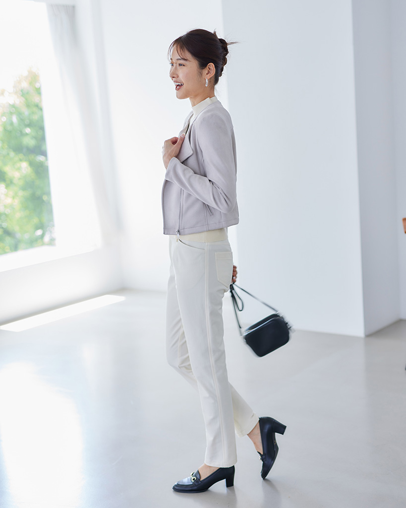 ウエストから足首までほど良くフィットする、スリムシルエットです。