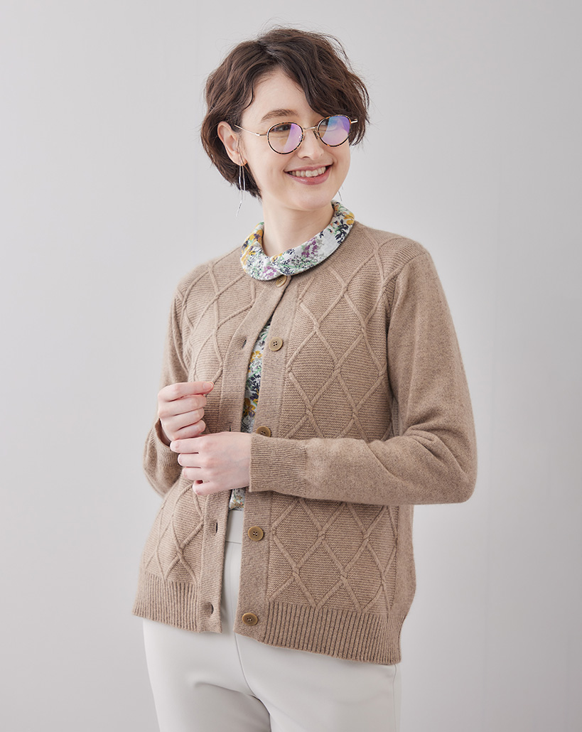 ダイヤ柄カシミヤカーディガン ¥42,900