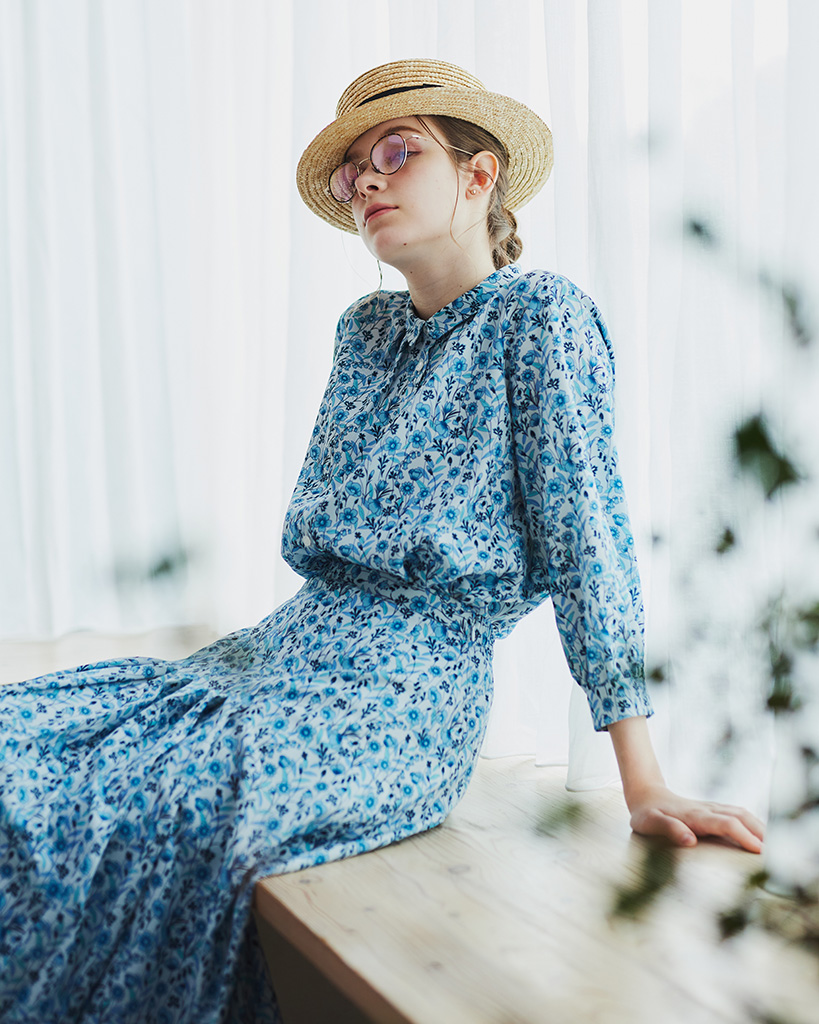 柔らかな表情のあるシフォンジョーゼットに可愛らしい花柄をプリントしたブラウス。
