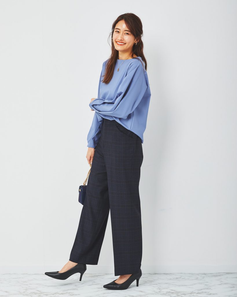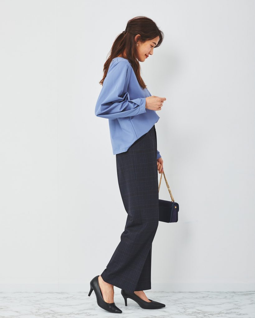 ハイウエストで、ヒップからストンと落ちる、程よいゆとりのセミワイドシルエットは、スッキリ脚長に見せてくれます。