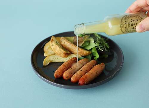 肉料理に合うレモンソースをソーセージにたっぷりかけ、さっぱりとした味わいに。レモンの皮のほろ苦さがアクセントになって味に深みが出ます。