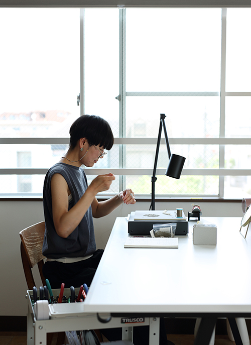 けれど、夏は着こなしがシンプルになる分、アクセサリーで遊べる季節でもあります。そこで今回は、夏の着こなしに映える“akiko tamai”のビーズアクセサリーをご紹介。素敵な作品が生まれるアトリエにおじゃまし、作品や制作風景を見せていただきました。