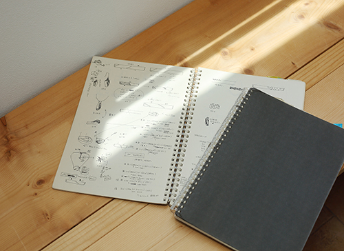アイデアや図案、作り方のプロセスなどが細かく書き込まれたノート。そこには庄野さんの世界観が広がっていて、見ているだけでワクワクします。