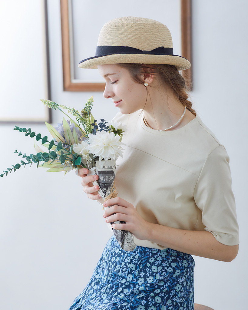 さらっと涼しく肌離れのよい強撚綿を使用した夏に最適なベーシックカットソー。