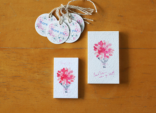 家庭用のインクジェットプリンターで印刷できるはがきサイズと名刺サイズの「花咲く和紙」。大切な人にプレゼントを贈るとき、一言メッセージが添えられていると喜びもひとしおです。
