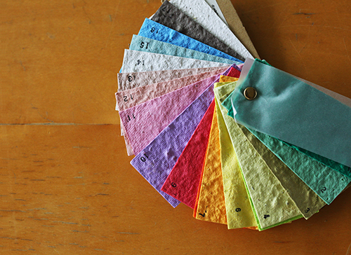 表面にタネの凹凸が出た厚口シードペーパー。ナチュラルカラーからビビッドカラーまで全17 色。オリジナルのカードやしおりなど、アイデア次第でさまざまな作品が作れます。