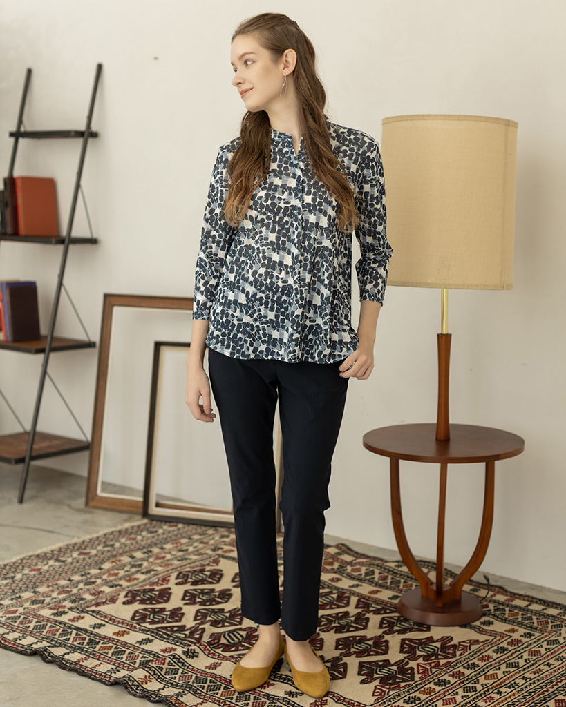 キーネックが首元をすっきりと上品にみせてくれます。