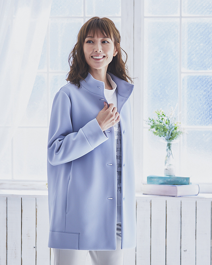 ストレッチ性と保温力に優れた膨らみ感のある素材をすっきりとしたデザインに仕上げ、上品なルックスでコーディネートの幅が広がります。