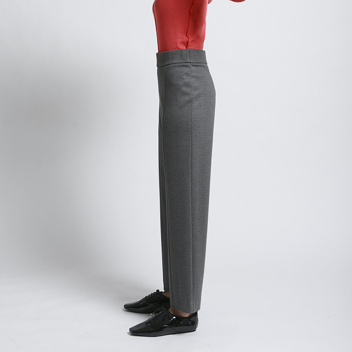 ウエスト部分は総ゴムで窮屈感がなく、センターライン(逆ピンタック)入りでスッキリ脚長に見せてくれます。