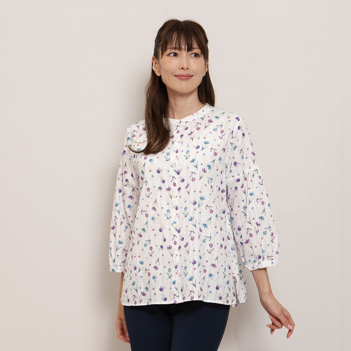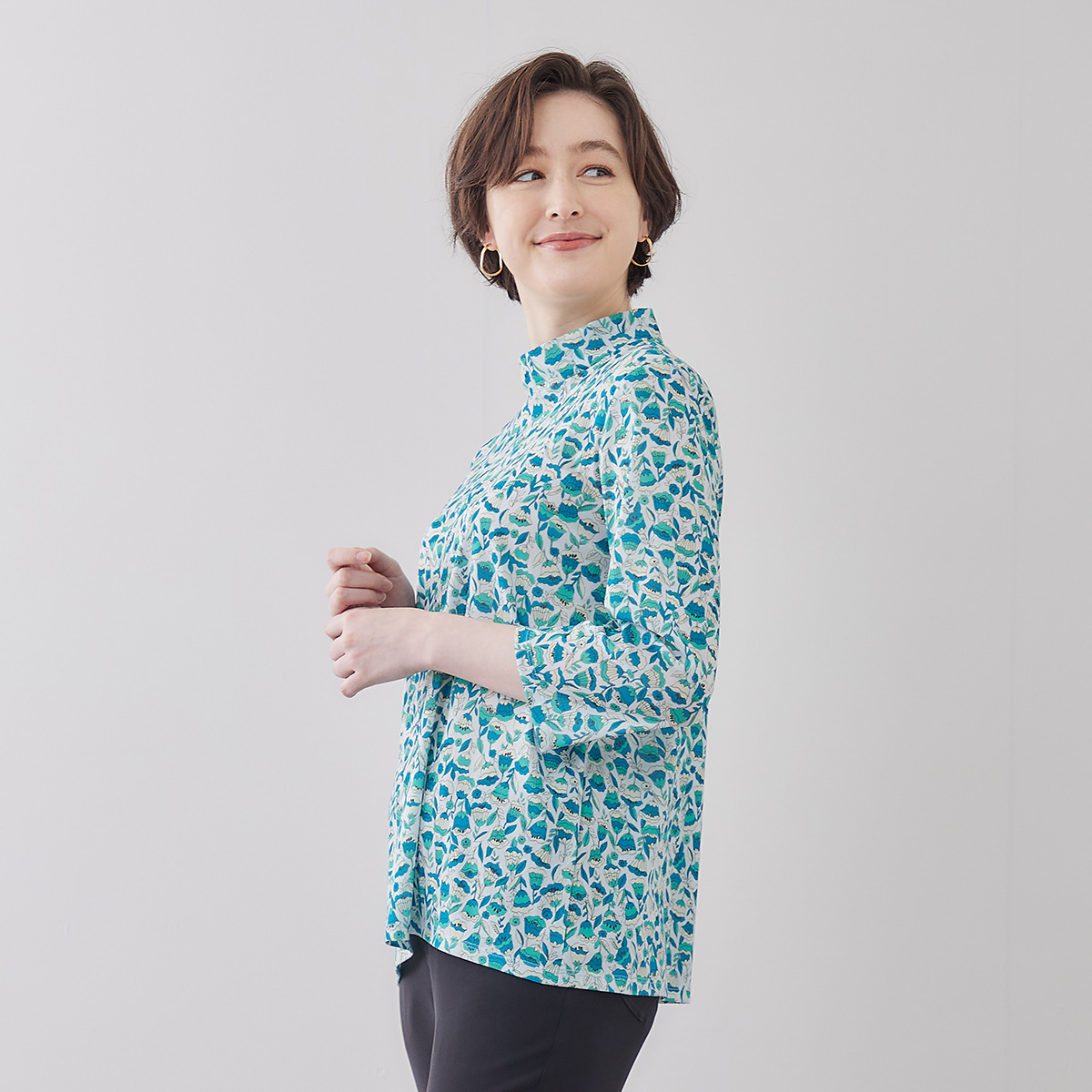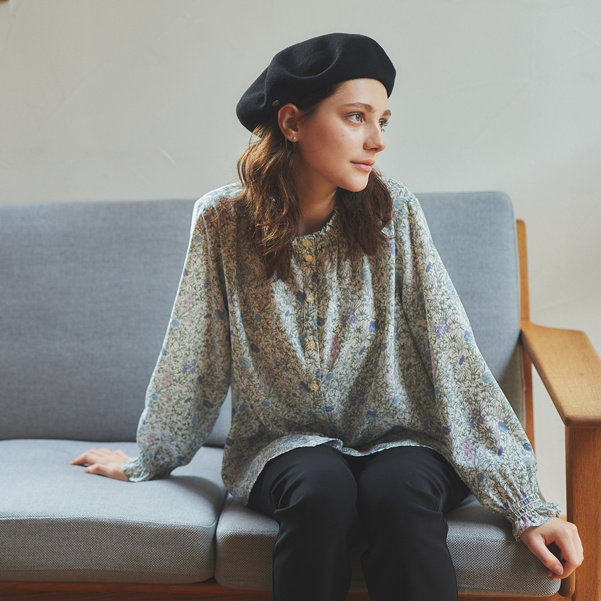 LIBERTYブラウス ¥23,100 英国「LIBERTY」社のアーカイブの中から タンポポ・ヤグルマギク・亜麻といった英国の草原をモチーフにした “Sand...