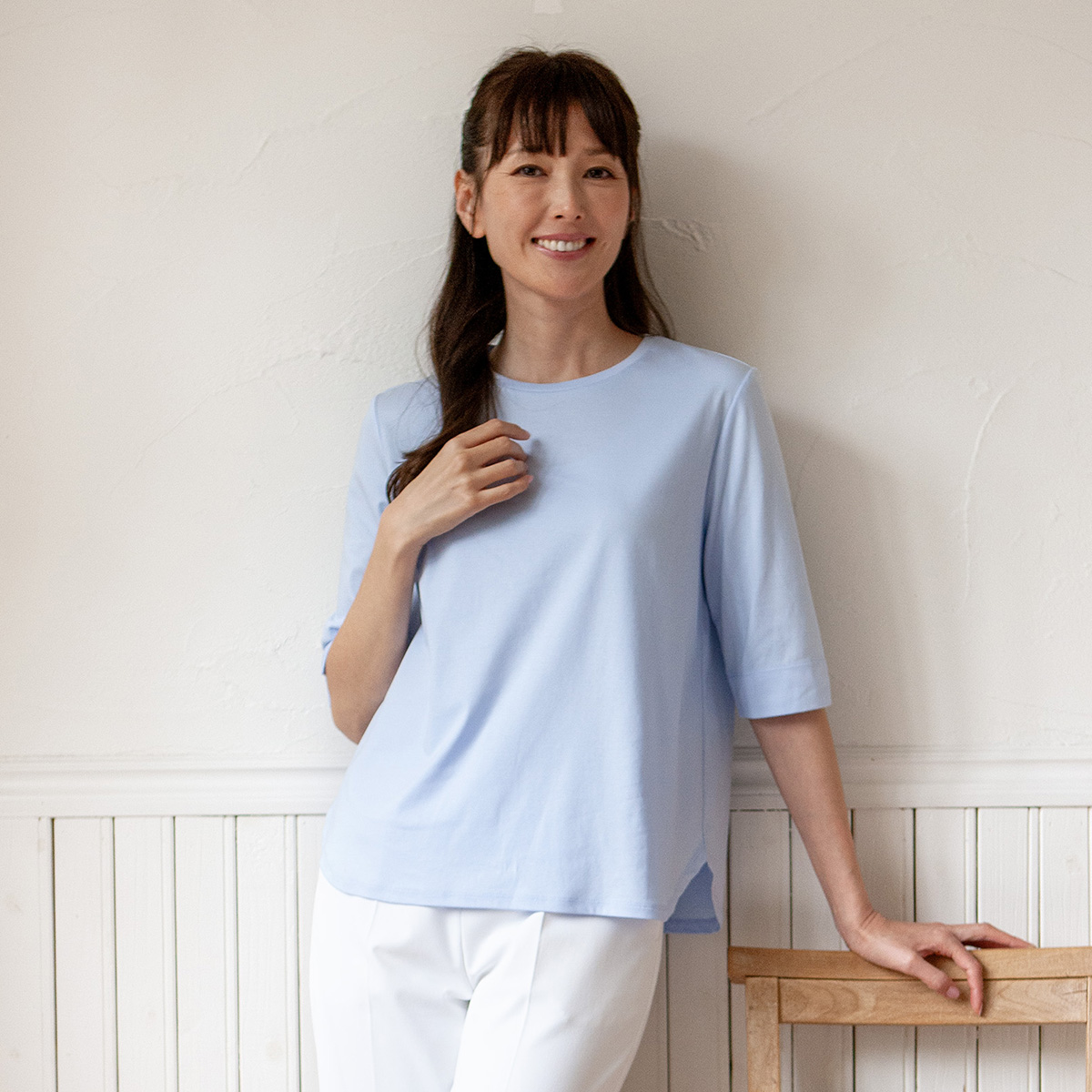 超長綿シルケットカットソー ¥7,700 細番手の超長綿(1/60)に「シルケット加工」と「バイオ加工」を施し、 シルクのような艶と、しなやかな肌触りに仕上げた...