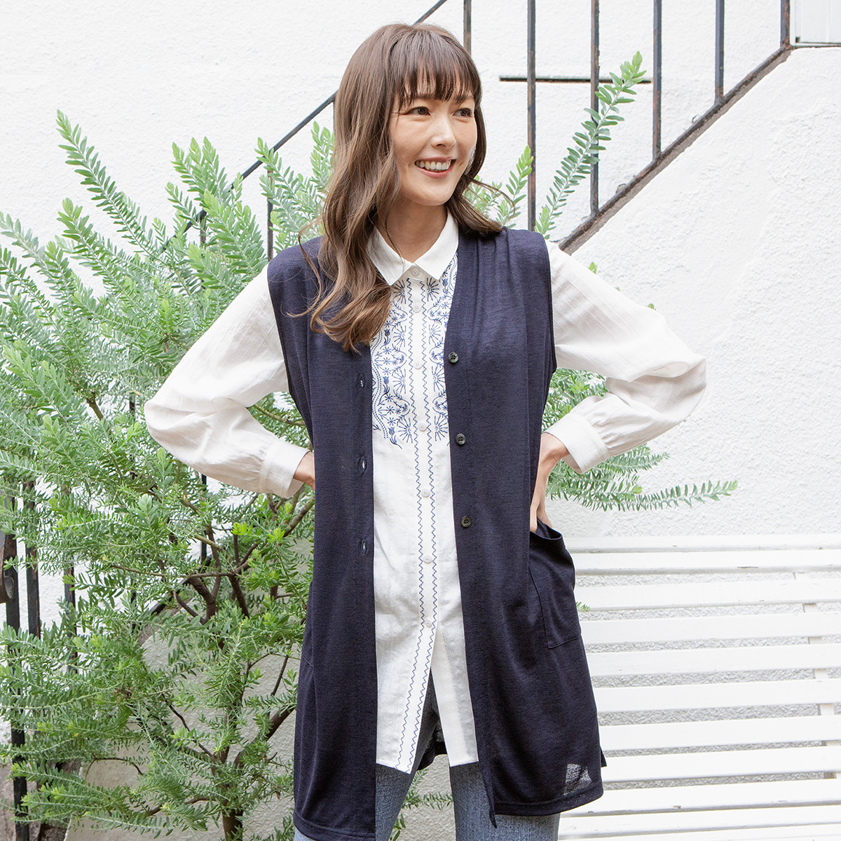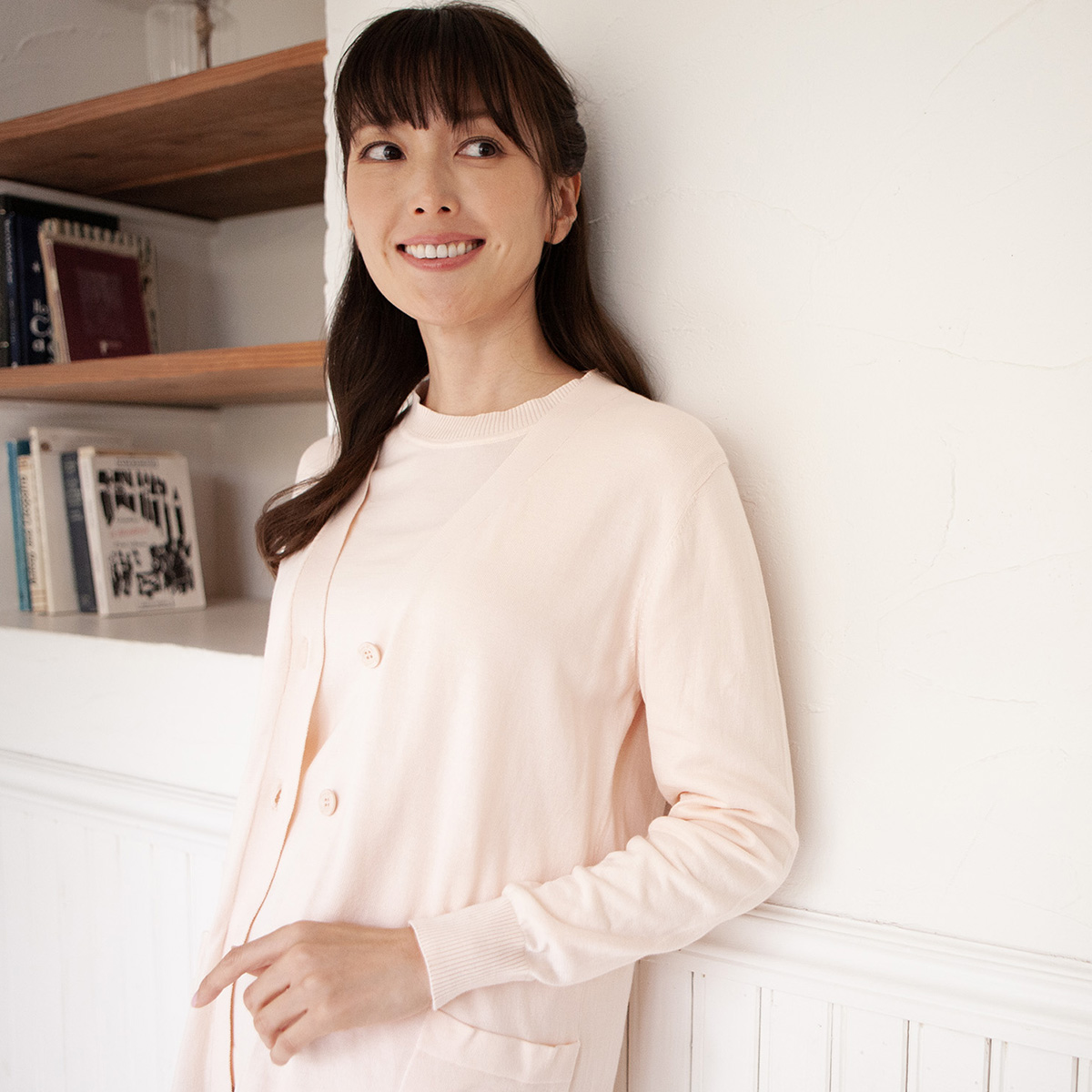 SUVIN COTTON ニット ¥19,800 (中に着たニットカットソー ¥17,600) コットンの中で最高品質と言われる「スヴィンコットン」Vネックニッ...