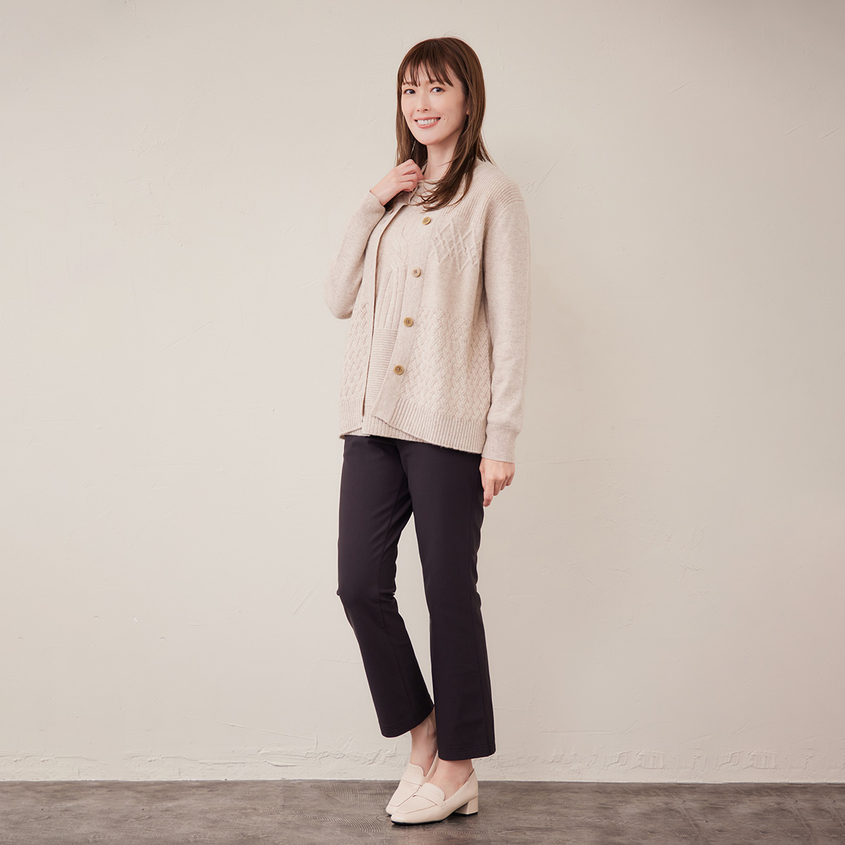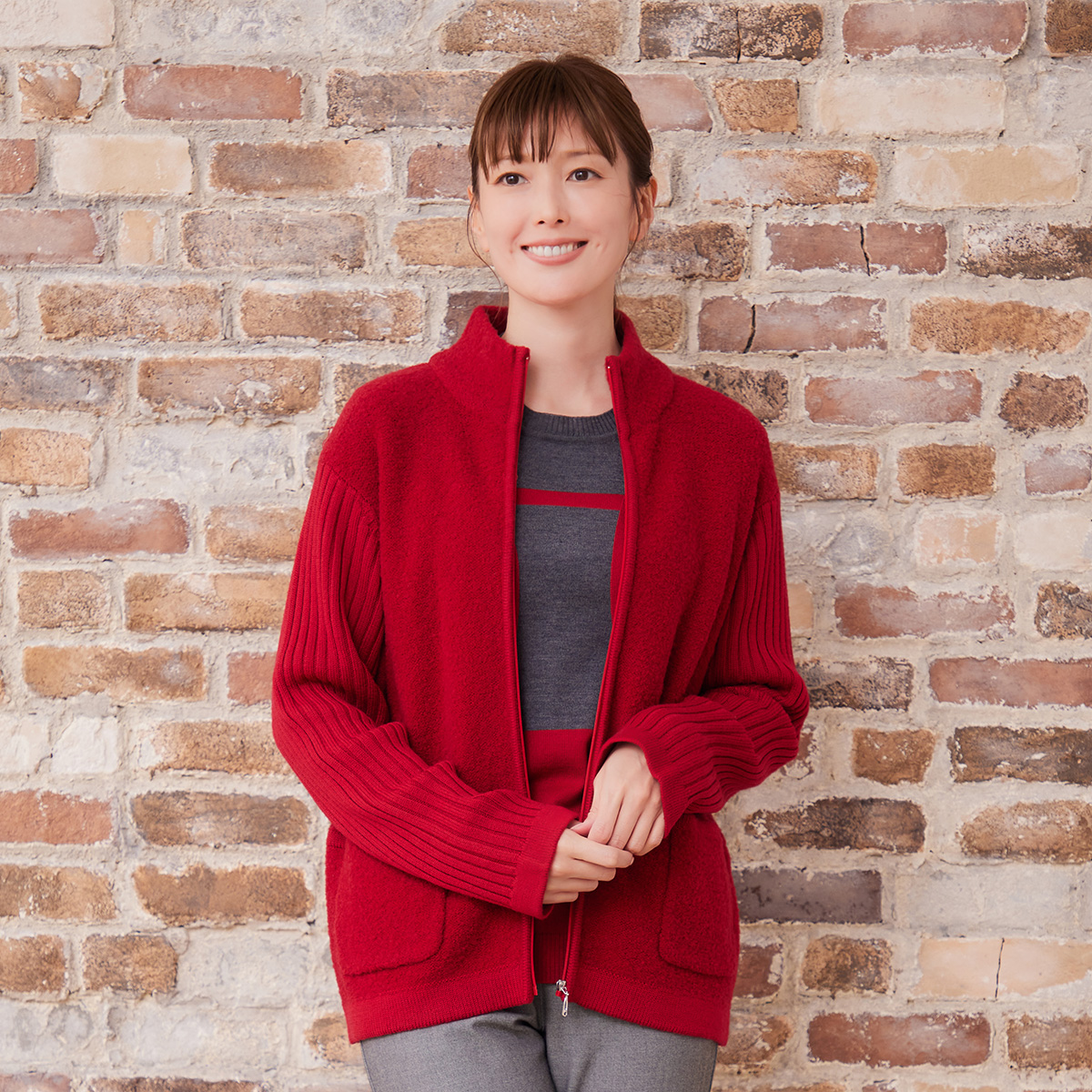 ブークレカーディガン ¥19,800 ふっくらとした柔らかでボリューム感のあるブークレを身頃に使用し、 袖をリブで切り替えたZIPカーディガン。 ポケットがデザ...