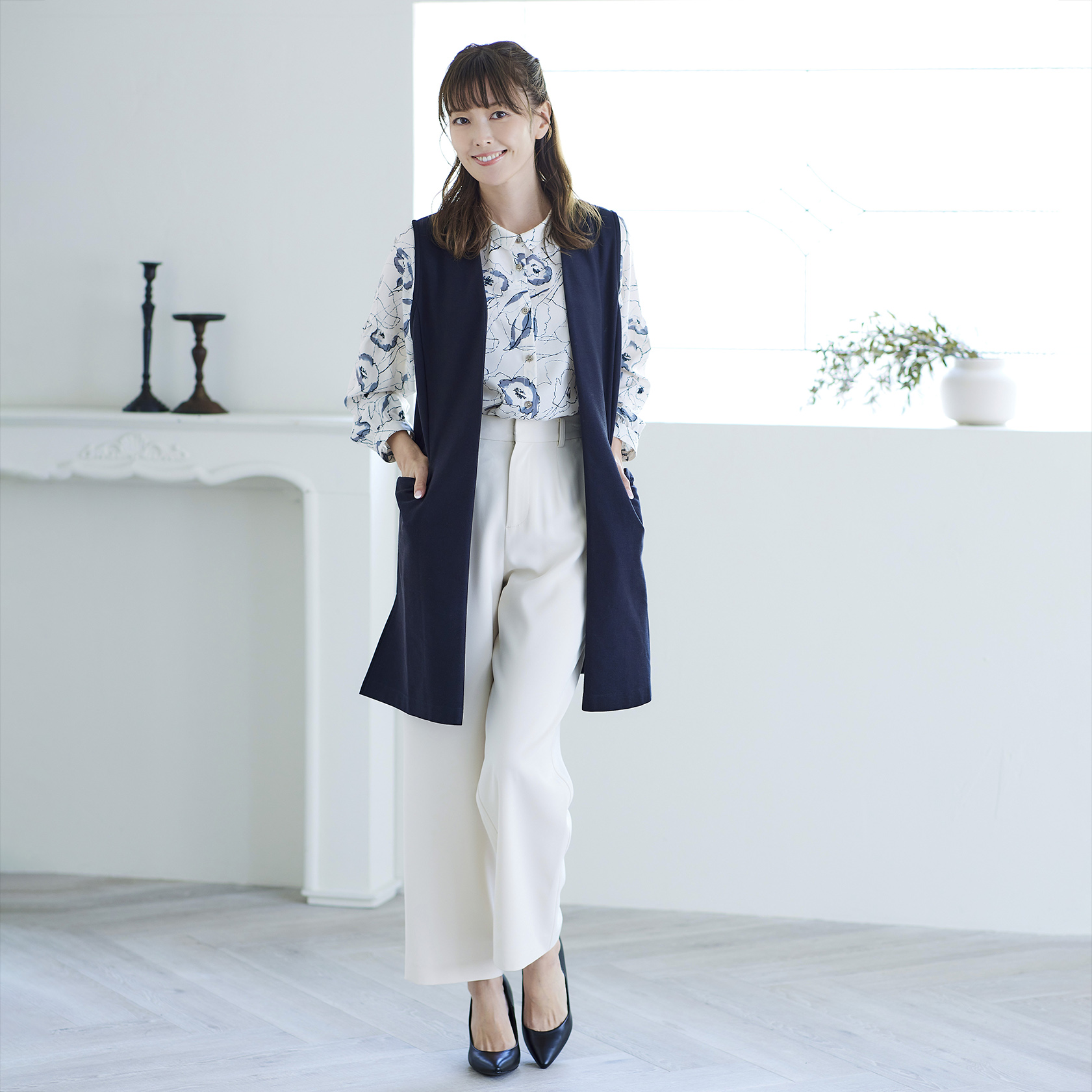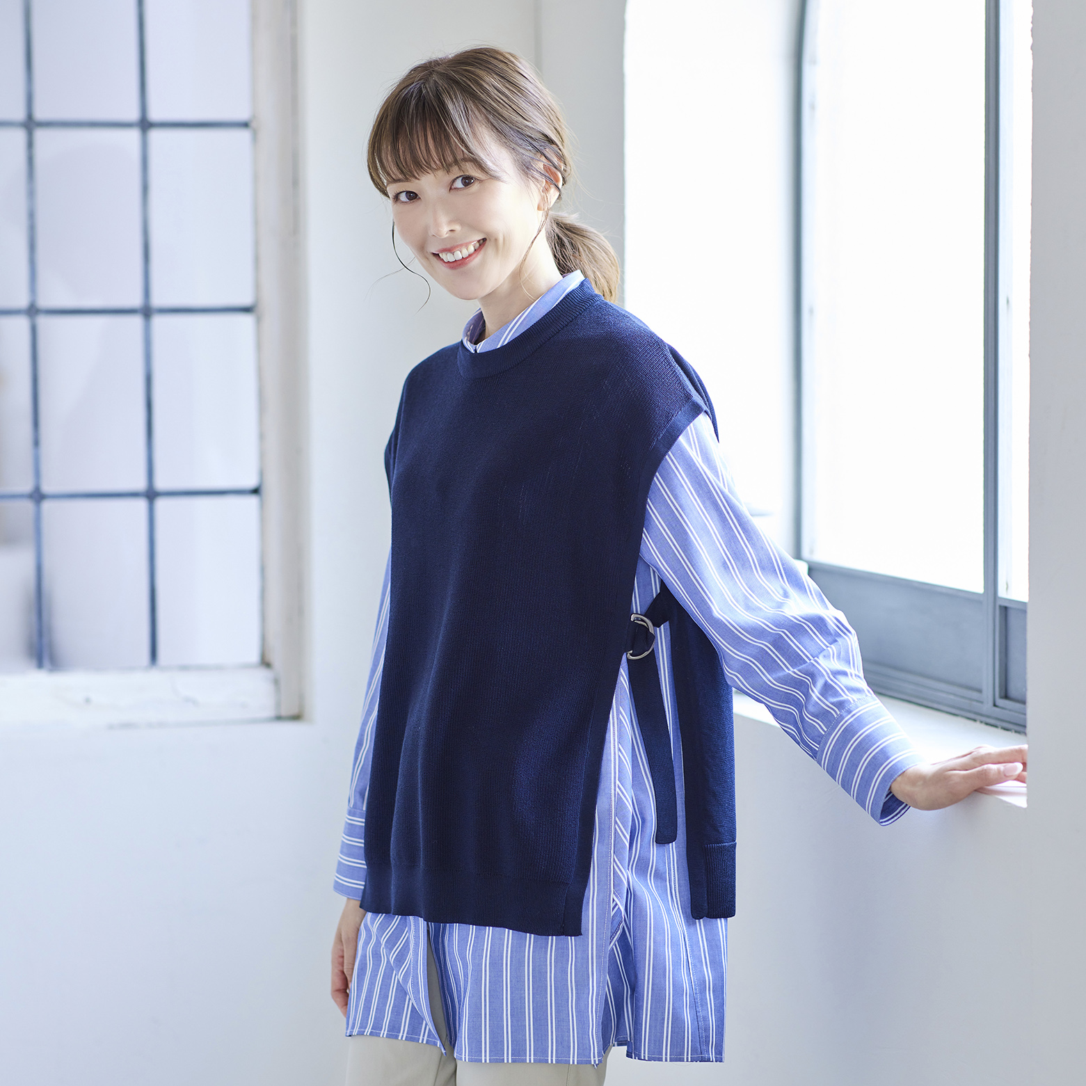 ツイルロングベスト ¥15,400(税込) 羽織るだけでコーディネートのオシャレ度がアップする、トレンドのロングベスト。 上品な表面感のツイル生地は、快適な着心...