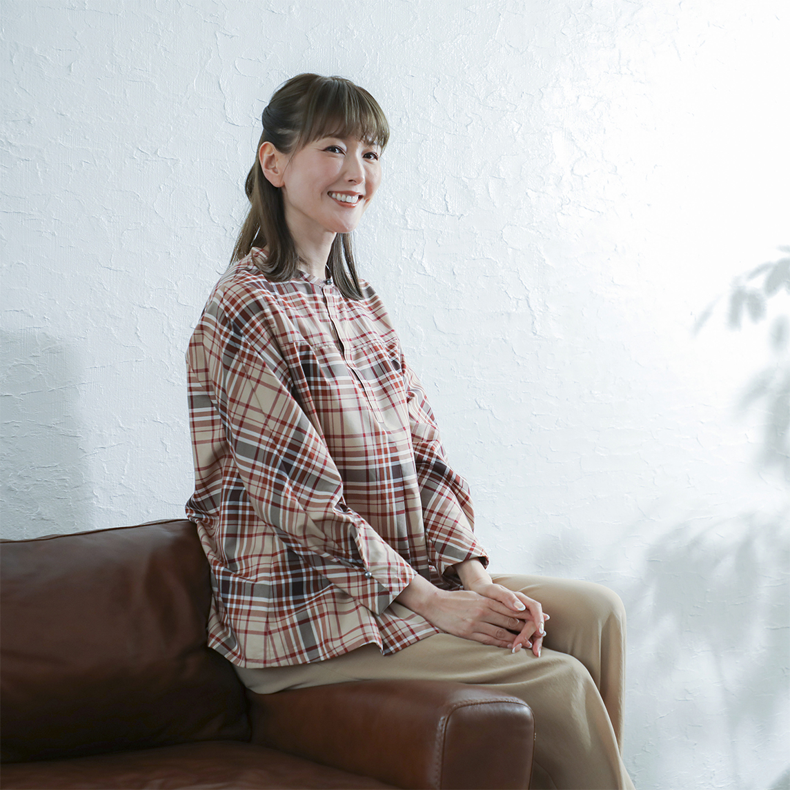 チェックブラウス 17,600円(税込) 前身・袖部分のパールボタンとタックデザインをアクセントにフェミニンなルックスに仕上げた被りタイプのチェックブラウス。 ...