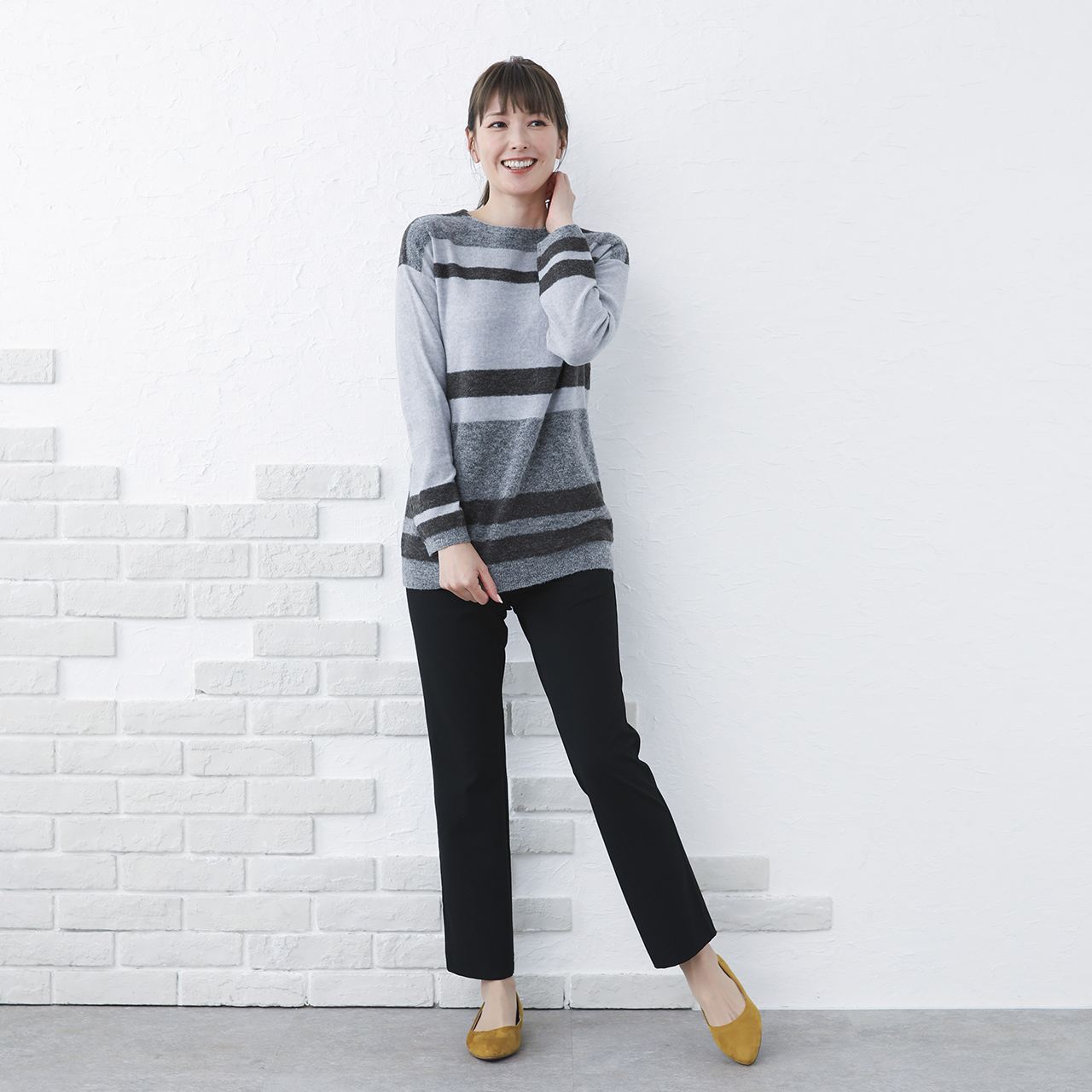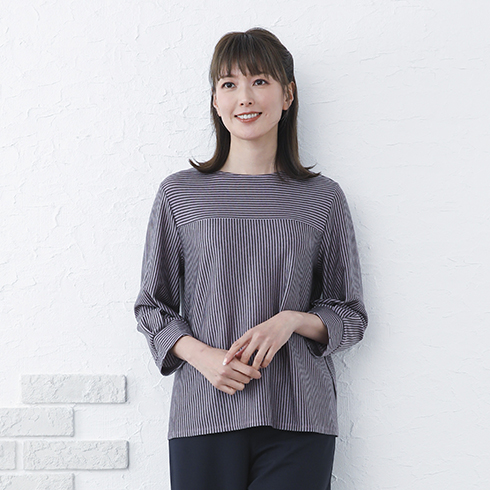 セルロースカットソー 13,200円 環境に優しい植物由来のセルロースを使用し、ボーダーとストライプの切り替えをデザインアクセントにしたソフトタッチのミラノリブ...